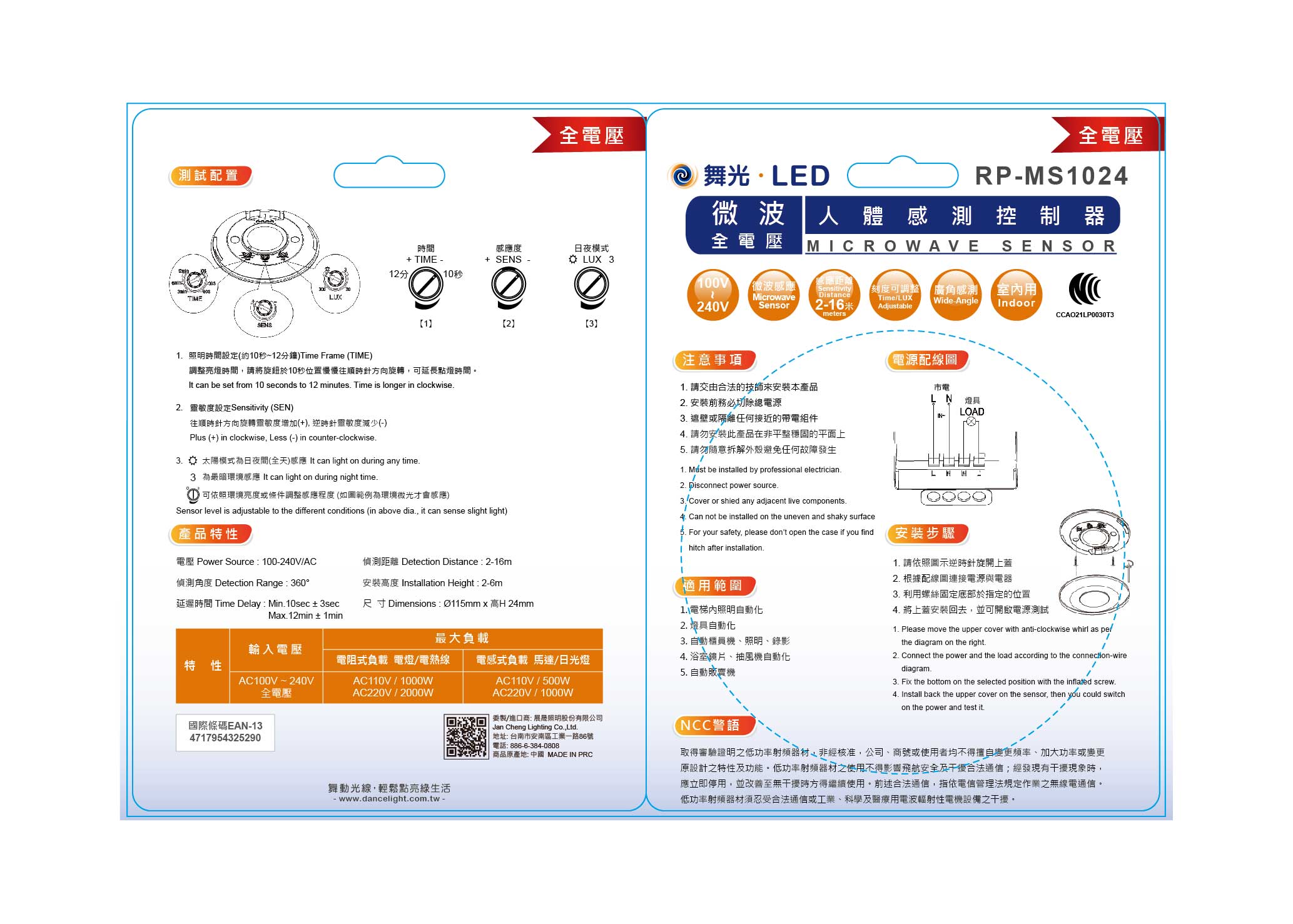可調感應直徑:2~16米